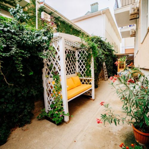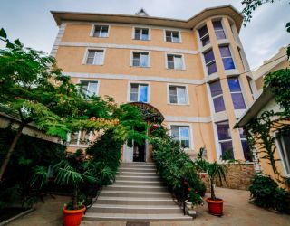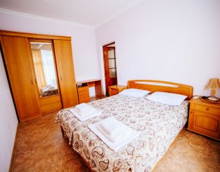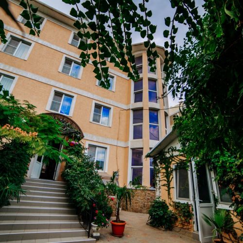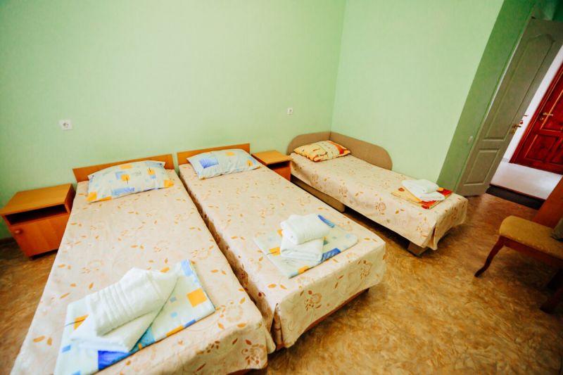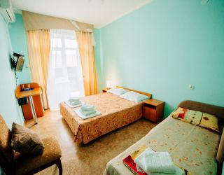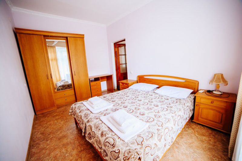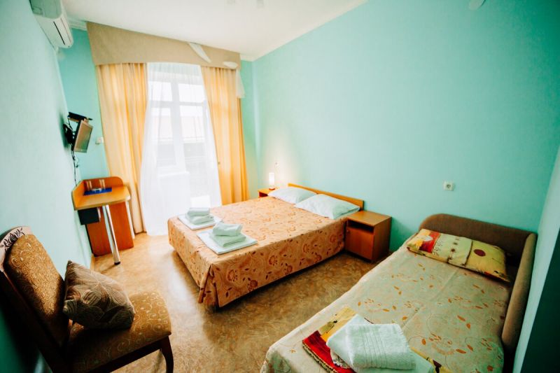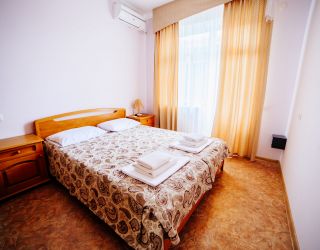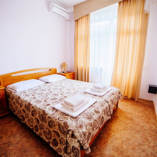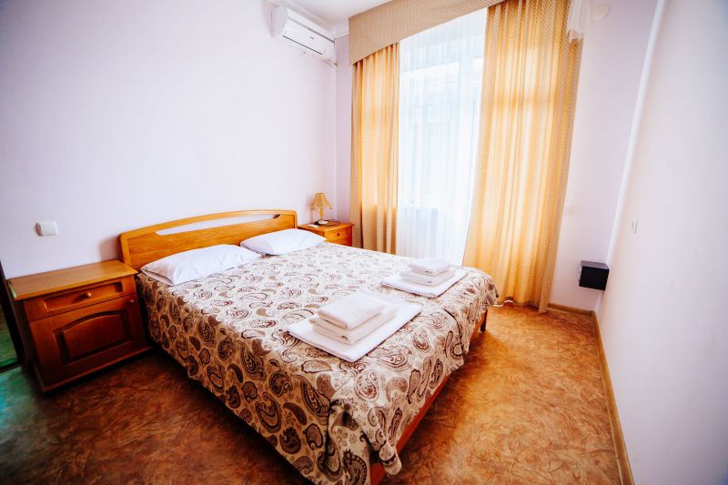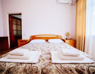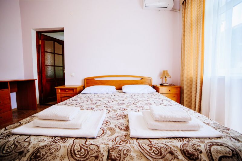 Четырехэтажное здание отеля находится на территории площадью чуть меньше 2000 кв.м. Гостей ждут двух- и четырехместные номера трех категорий – Стандарт, Семейный и Комфорт. Все номера укомплектованы двуспальными кроватями, диванами, собственными ванными комнатами с душевыми, в каждом есть кондиционер, мини-холодильник, телевизор.